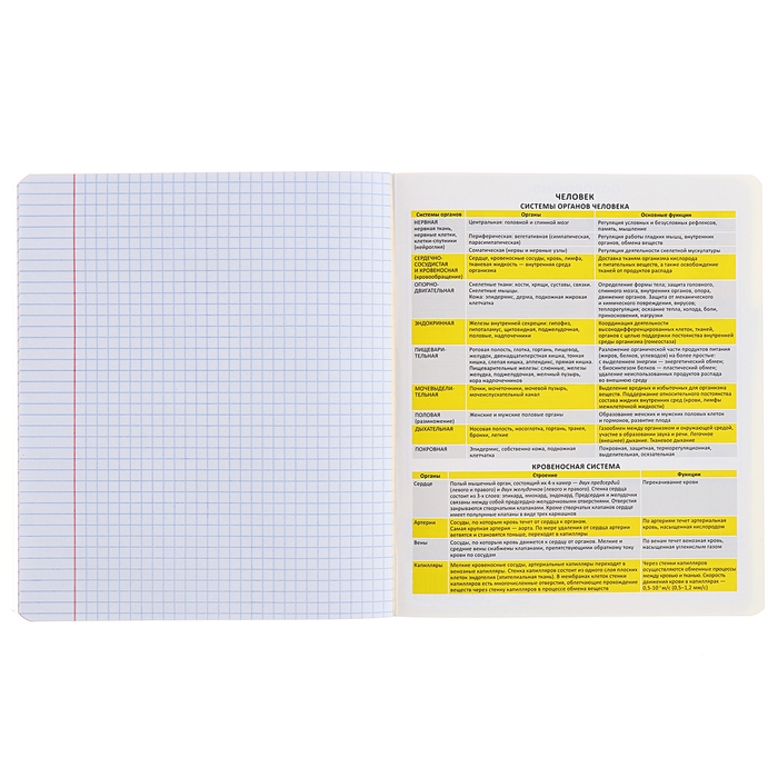 Тетрадь предметная формата А5+ (170x203 мм). Двойная обложка: внешняя выполнена из высококачественного износостойкого прозрачного пластика с фактурой "апельсиновая корка", внутренняя — из качественной мелованной бумаги. В блоке 48 листов в клетку с полями. Бумага офсетная плотностью 60 г/м2. Белизна бумаги - 100%. Цвет линовки - синий. Скругленные уголки обложки и блока. Тип скрепления - скоба. Имеет инфо-блок с кратким изложением школьной программы. Тетради упакованы в термоусадочную плёнку по 5 штук.