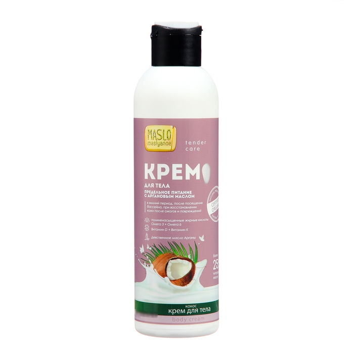 Крем для тела Maslo Maslyanoe Кокос, предельное питание, с аргановым маслом, 200 мл
