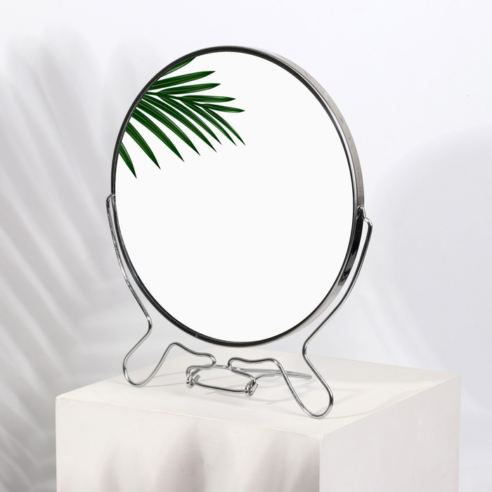 Зеркало на ножке «Овал», двустороннее, зеркальная поверхность 13,5 × 16,5 см, цвет МИКС