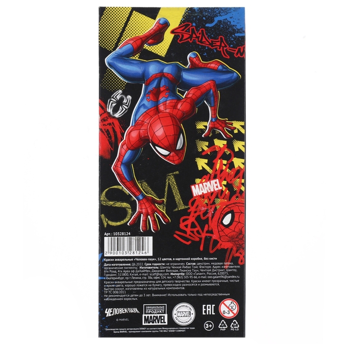 Акварель медовая «Человек-паук», 12 цветов, в картонной коробке, без кисти
