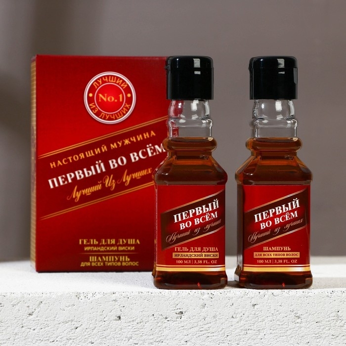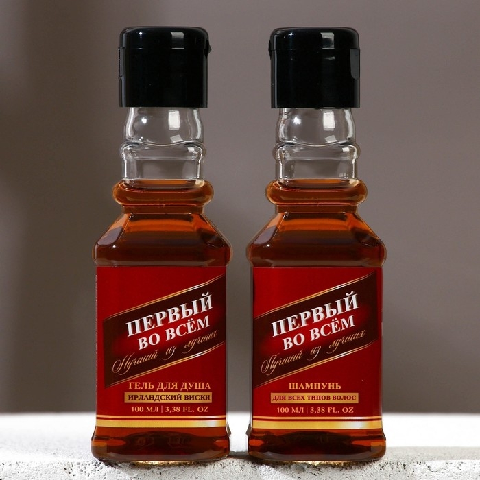 Подарочный набор косметики «Первый во всём», гель для душа и шампунь для волос во флаконах виски, 2 х 100 мл, Новый Год