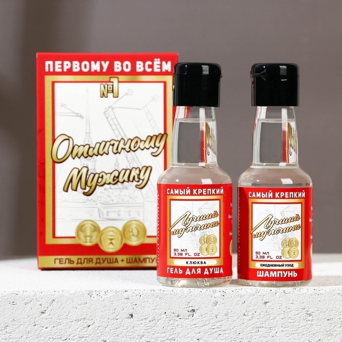 Подарочный набор косметики «Отличному мужику», гель для душа 90 мл и шампунь для волос 90 мл, HARD LINE