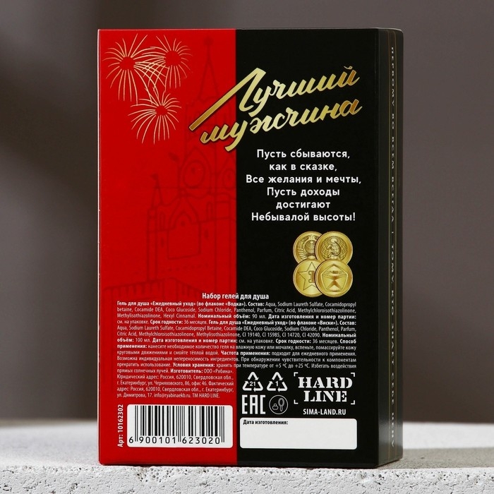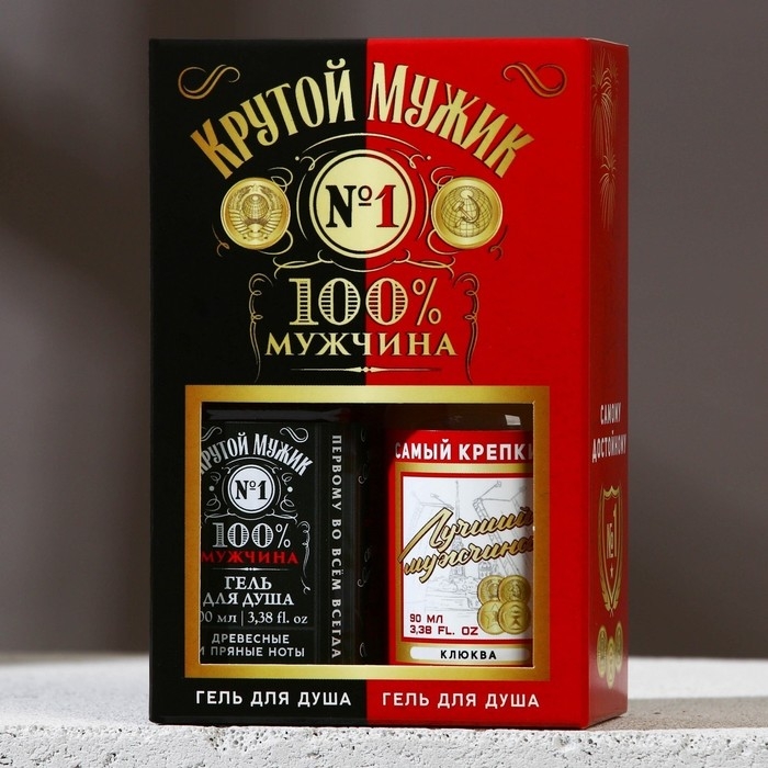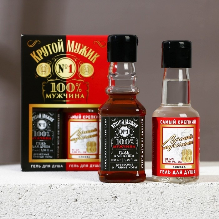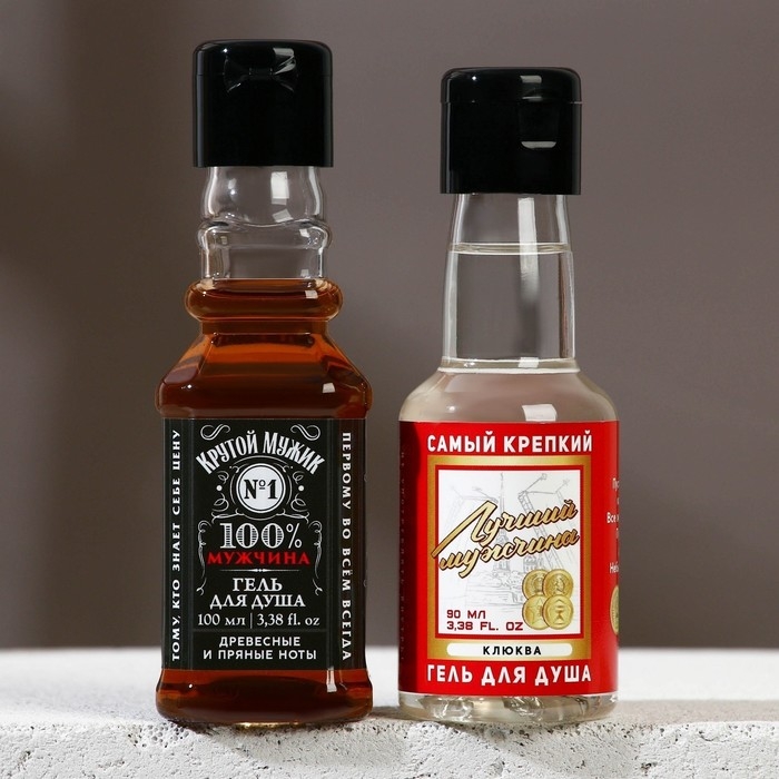 Подарочный набор косметики «Крутой мужик», гель для душа во флаконе виски 100 мл и гель для душа во флаконе водки 90 мл, Новый Год
