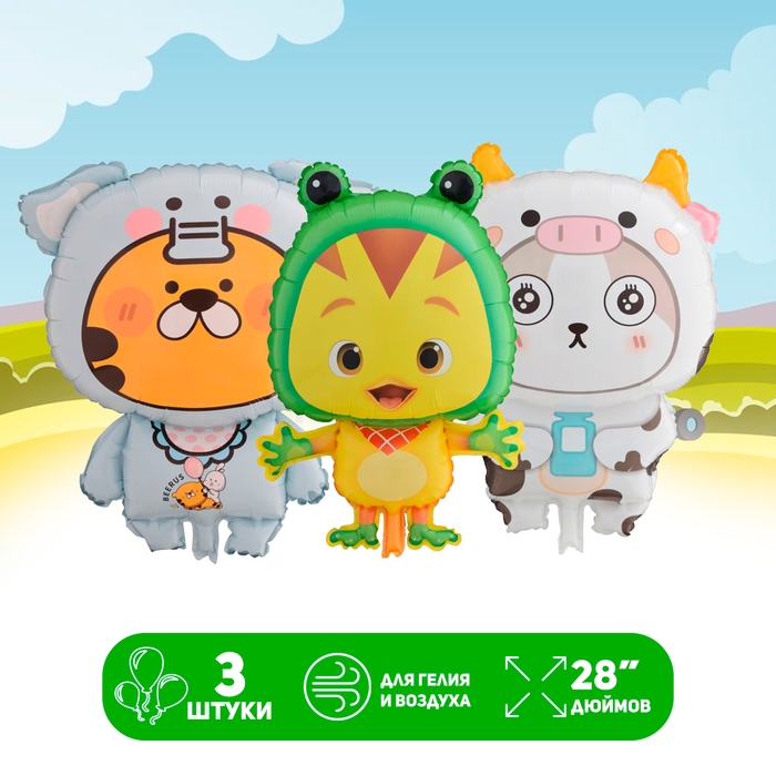 Набор фольгированных шаров «Звери в костюмах других зверей», 3 шт.