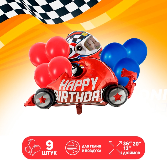 Набор шаров «Happy Birthday. Гонщику», латекс, фольга, 9 шт.