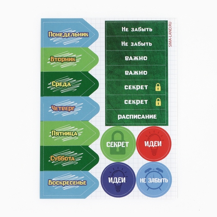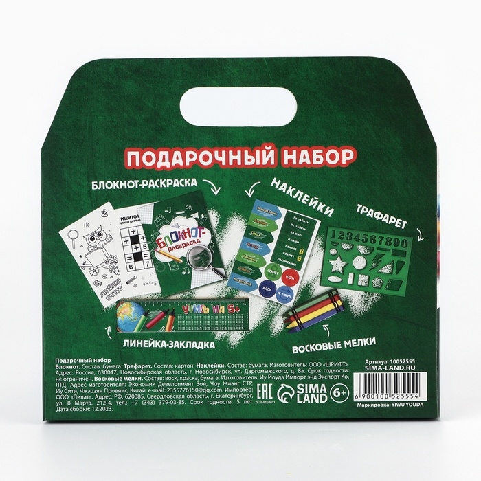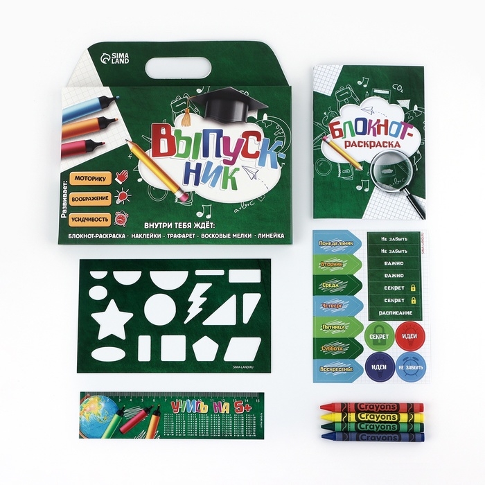 Блокнот, Линейка, Мелки, Наклейки, Трафарет