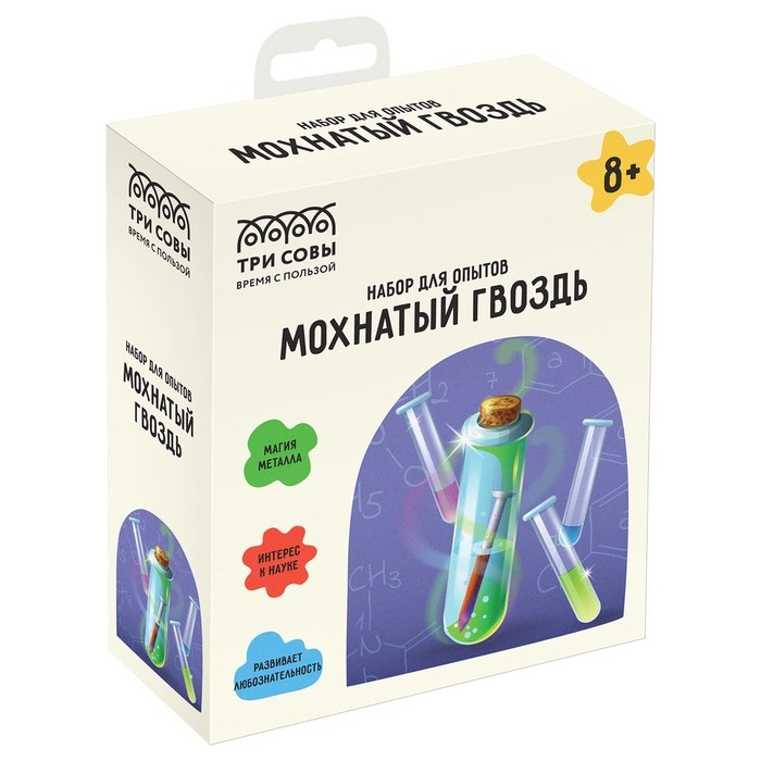 Набор для проведения опытов «Мохнатый гвоздь» — набор станет настоящим открытием для любознательных детей от 8 лет, позволит им самостоятельно провести первые научные эксперименты дома и узнать множество нового о химических и физических законах.