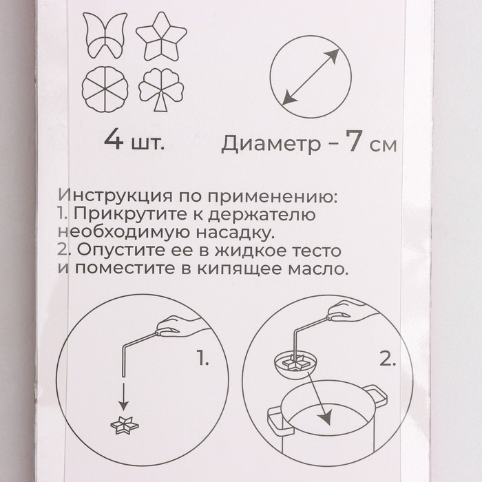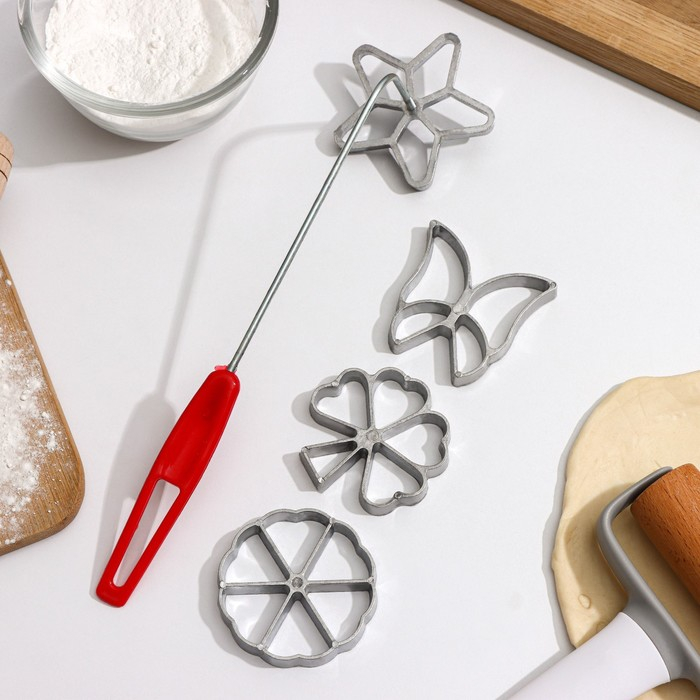 Каждая форма имеет прочные стенки из алюминия, которые не деформируются под действием кипящего масла. Из такой формы получается невесомое, аккуратное и аппетитное печенье в красивой форме, приготовленное во фритюре. Формы так же можно использовать для красивой вырезки теста для печенья и пряников, для вафель.