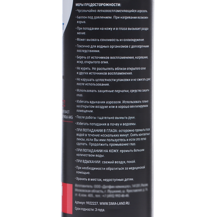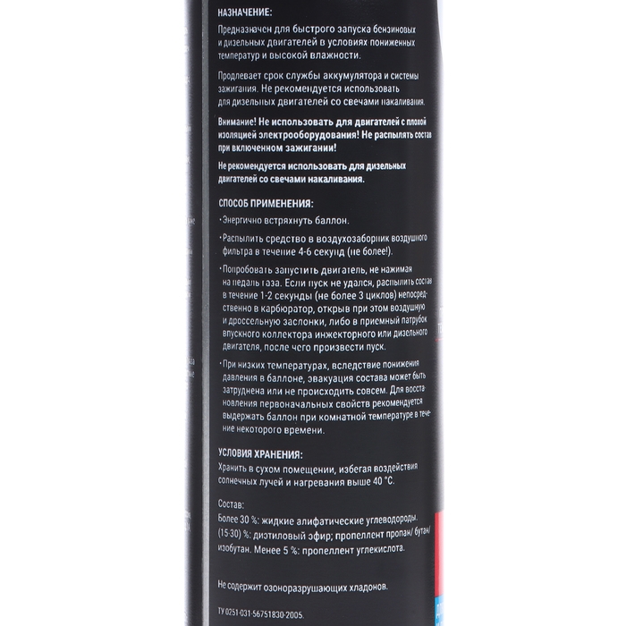 Быстрый старт для двигателя помогает запустить мотор при низких температурах, продлевая срок службы аккумулятора и системы зажигания. Размораживатель предназначен для удаления льда и снега с поверхностей автомобиля, таких как стёкла, зеркала, фары и замки. Способ применения: энергично встряхнуть баллон перед использованием, затем распылить средство согласно инструкции на упаковке.