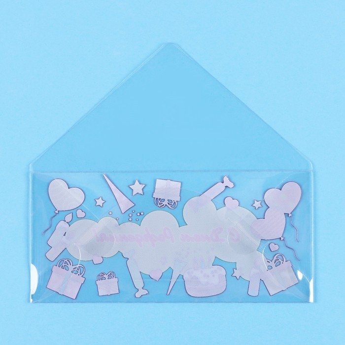Конверт для денег "С Днём Рождения!" прозрачный ПВХ, подарки и шары, 16 х 8 см