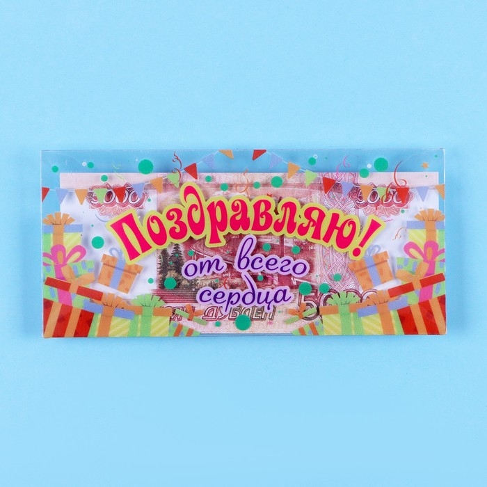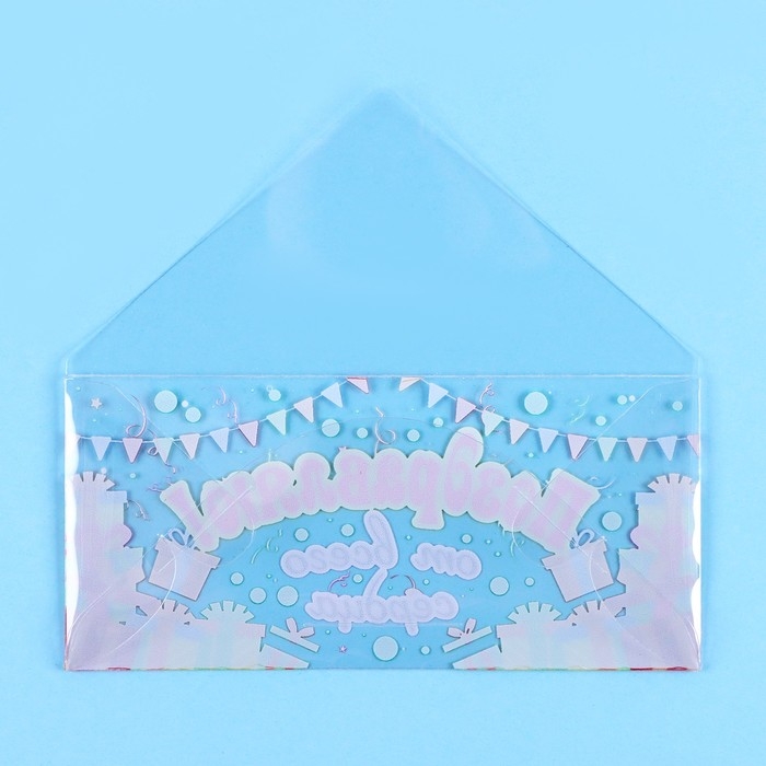 Конверт для денег "Поздравляю от всего сердца!" прозрачный ПВХ, 16 х 8 см