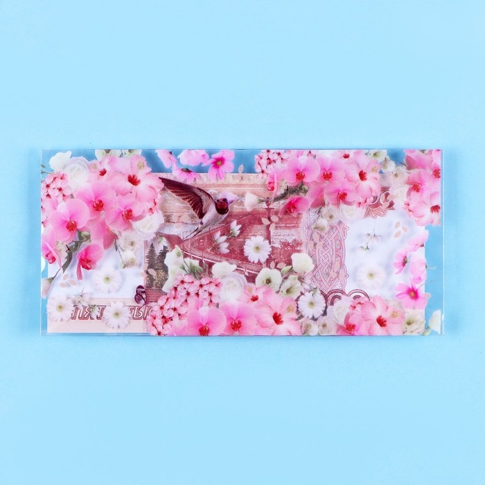 Конверт для денег "Универсальный!" прозрачный ПВХ, птица, 16 х 8 см