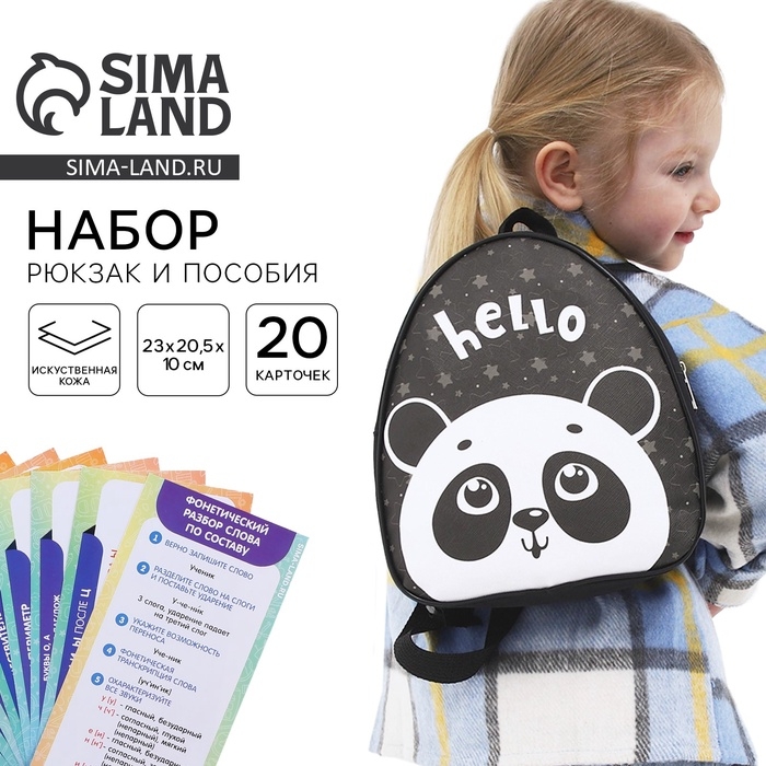 Детский рюкзак+ пособия для школы «Панда», 23х20,5 см