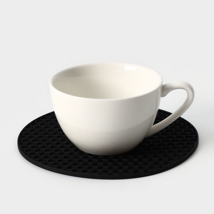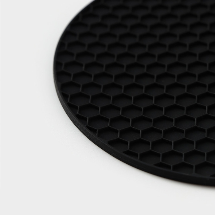Коврик - подставка под горячее силиконовый, d=140 мм, толщина=3.5 мм, цвет черный