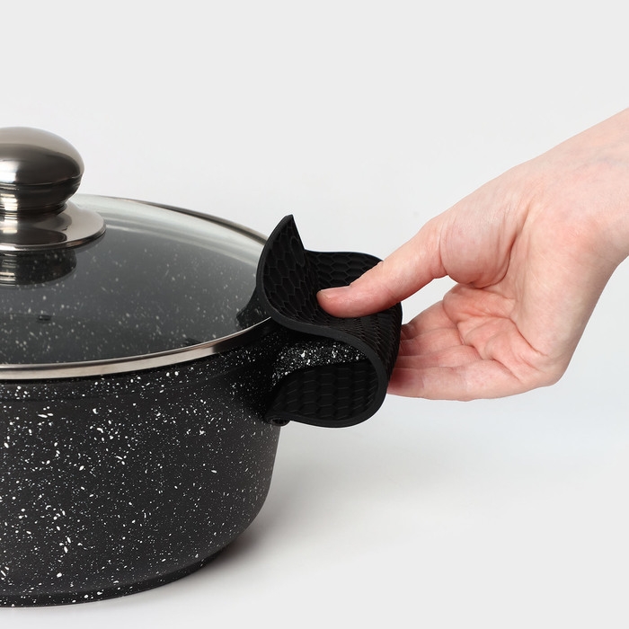 Изготовлен из высококачественного силикона, подставка легко выдерживает высокие температуры и не скользит на поверхности. Его эргономичный дизайн позволяет удобно держать горячую кастрюлю или сковороду, не боясь обжечь руки. Благодаря компактному размеру, прихватку можно использовать как для больших, так и для маленьких кастрюль и сковородок.