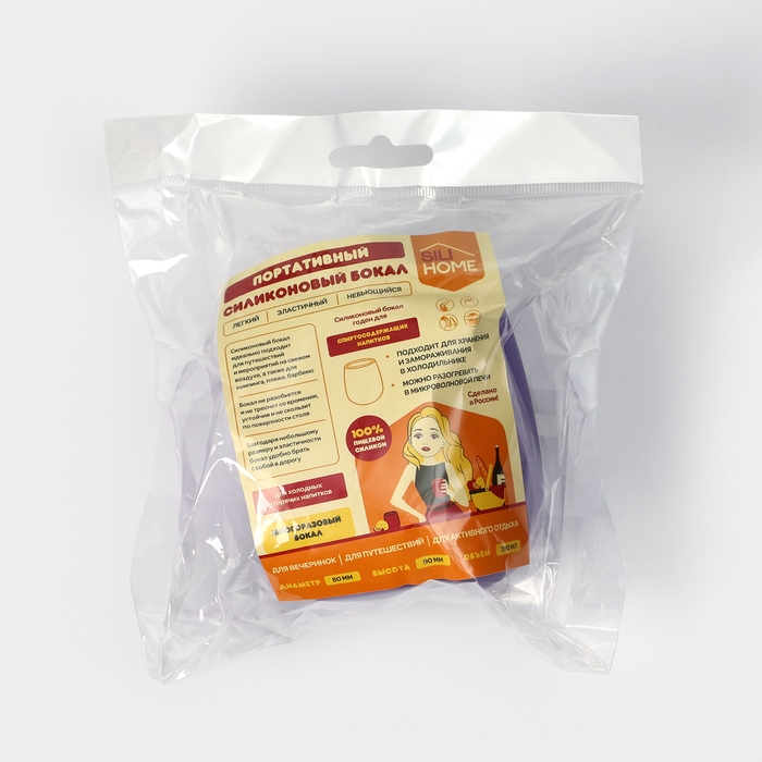 Силиконовый бокал SILIHOME 290 мл для холодных и горячих напитков. Благодаря небольшому размеру и эластичности наше изделие удобно брать с собой в дорогу. Идеальный аксессуар для вечеринок, путешествий и активного отдыха на природе. Силиконовый бокал не разобьется и не треснет со временем, устойчив и не скользит по поверхности стола; возможно хранение и использование не только в холодильнике, но и в микроволновой печи. Материал - 100% пищевой силикон. Выдерживает температуру от -25С до +250С. Размеры: диаметр - 80 мм, высота - 90 мм, объем - 290 мл.