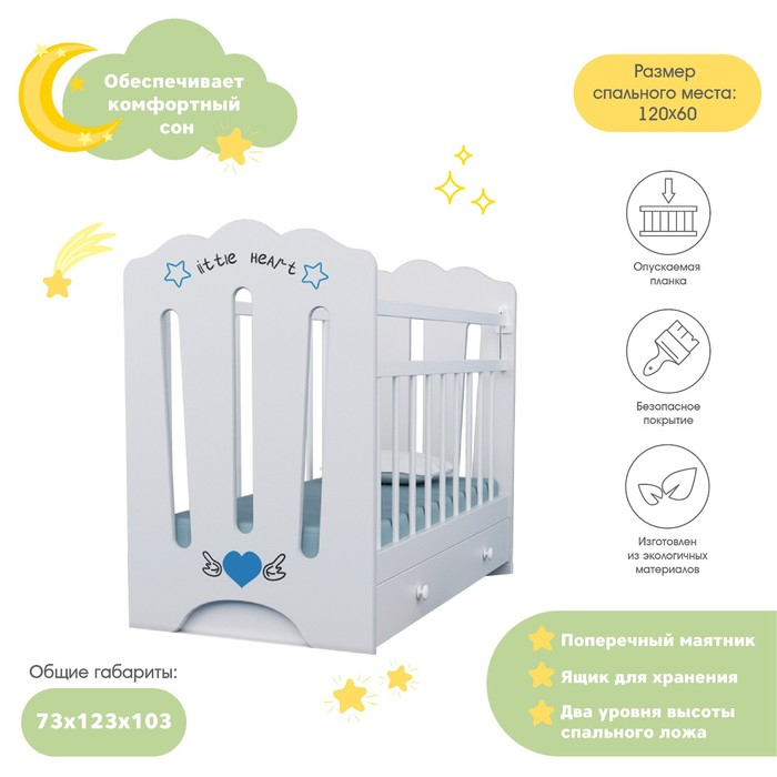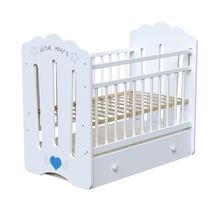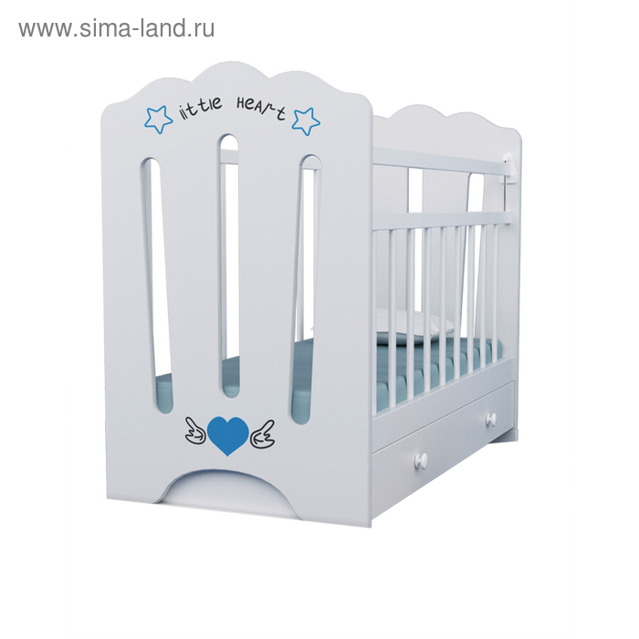 Кровать детская Little Heart маятник с ящиком (белый) (1200х600)