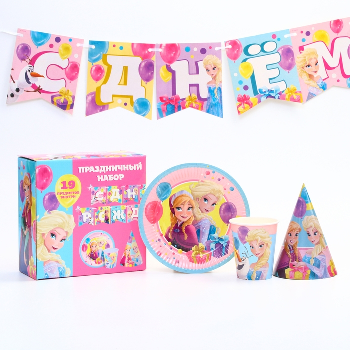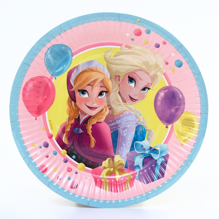 Набор одноразовой бумажной посуды, на 6 персон "С днем рождения!", Холодное сердце
