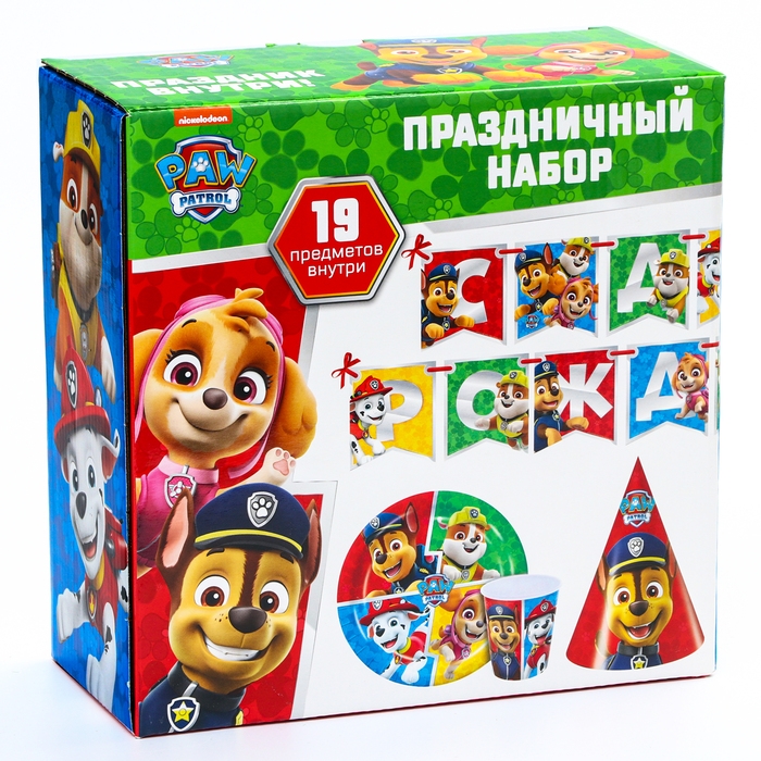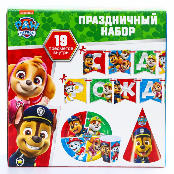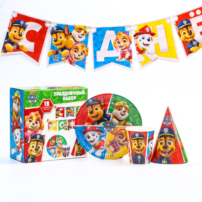 Набор одноразовой бумажной посуды, на 6 персон "С днем рождения!", Щенячий патруль