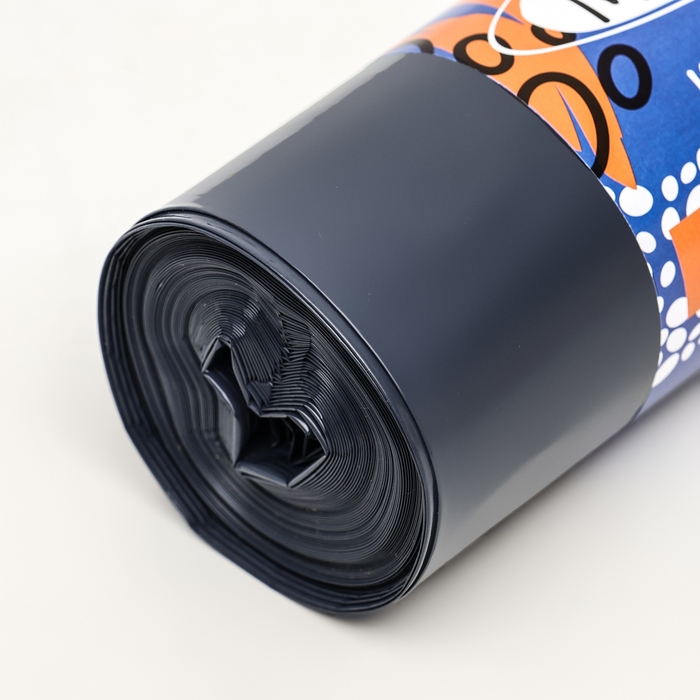 Пакеты для мусора изготовлены из прочного, мягкого материала с повышенным сопротивлением к проколам и продольным порезам - ПВД (полиэтилен высокого давления).