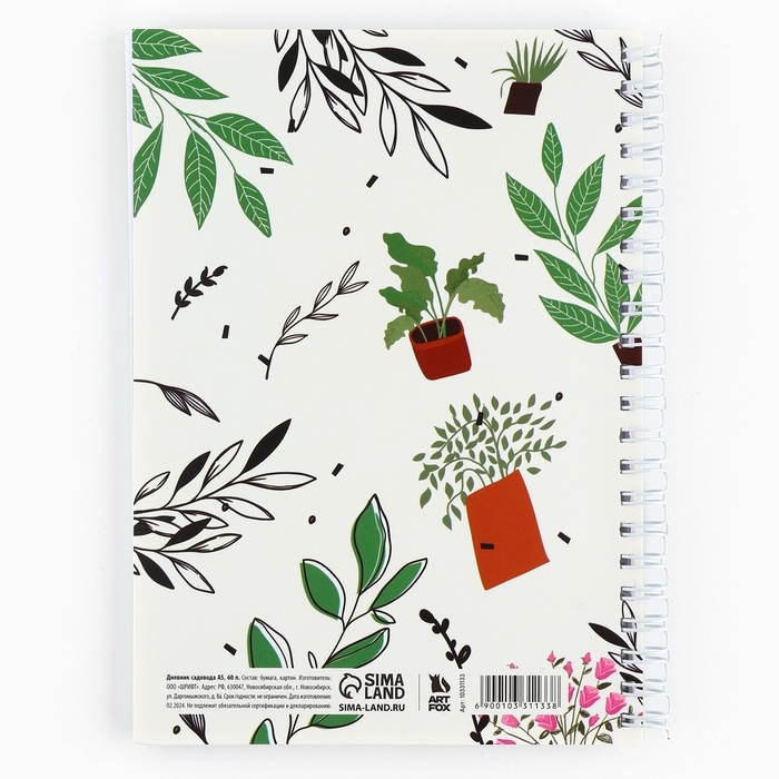 Ежедневник садовода А5, 60 л. Мягкая обложка, на гребне «Белый»