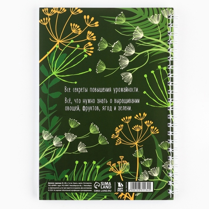 Ежедневник садовода А5, 60 л. Мягкая обложка, на гребне «Зеленый»