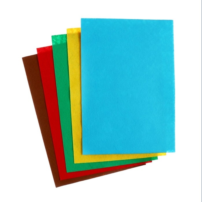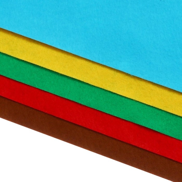 Фетр цветной набор, толщина-2 мм, формат А4, мягкий, 5 листов, 5 цветов, насыщенные цвета