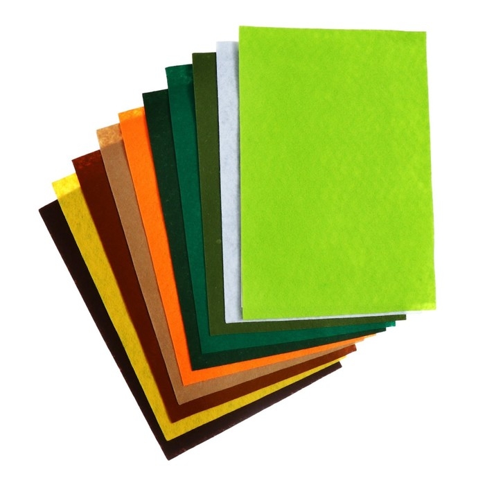 Фетр цветной набор, толщина-1 мм, формат А4, мягкий, 10 листов, 10 цветов, летние цвета