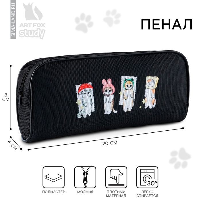 Пенал школьный текстильный «1 сентября: Котики» , 20 х 8 х 4 см