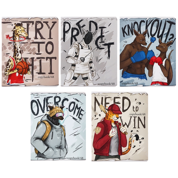 Тетрадь 48 листов в клетку "На спорте", обложка мелованный картон, ламинация "софт-тач", МИКС