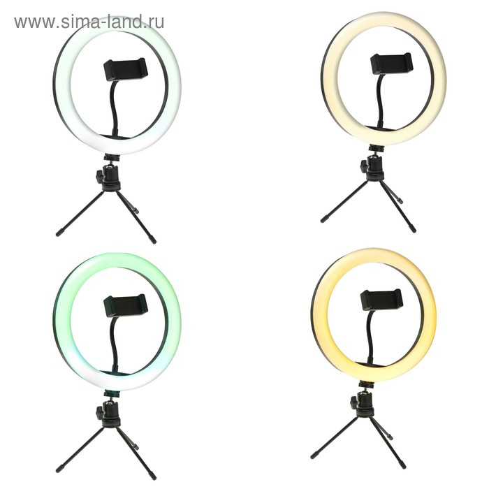 Светодиодная кольцевая лампа на штативе от LuazON поможет создать равномерное освещение для съёмок фото и видео. Штатив позволяет зафиксировать смартфон и регулировать его угол наклона. Для работы подключите устройство к адаптеру питания или к USB-розетке. Меняйте режимы и изменяйте яркость с помощью пульта на проводе.
