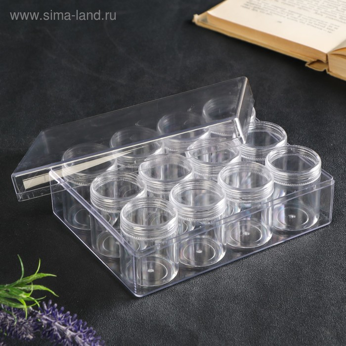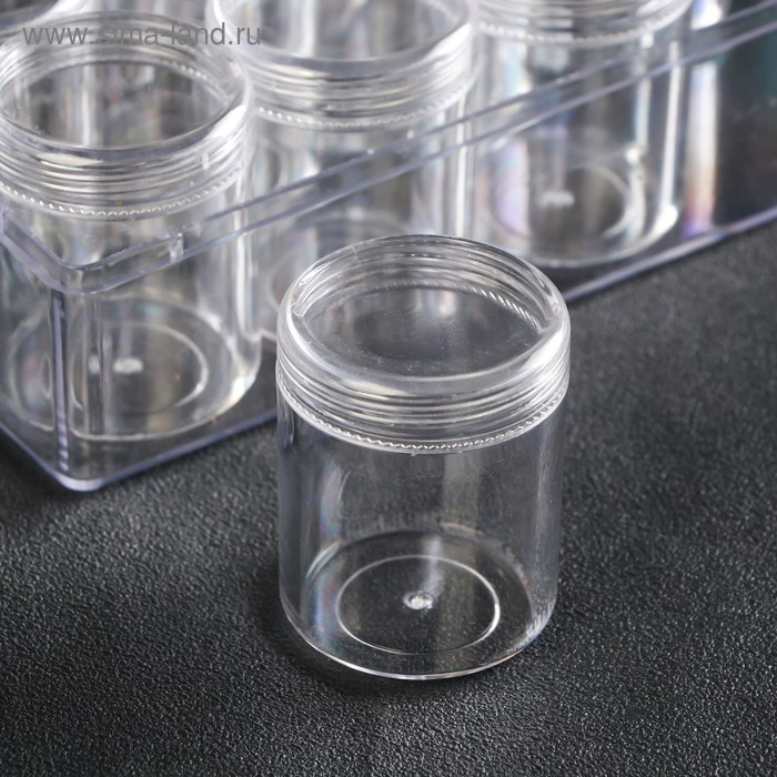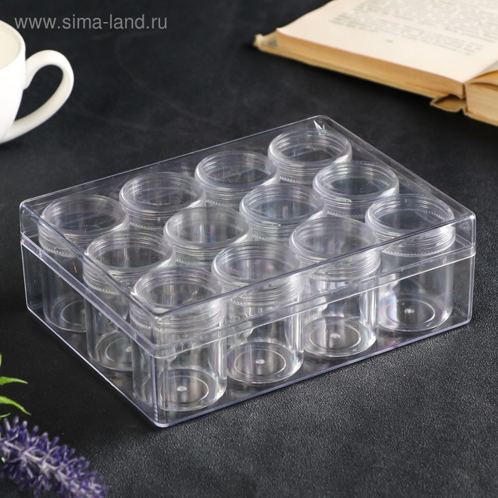 Шкатулка пластик для мелочей "Круг" прозрачная набор 12в1 4,8х3,7х3,7 см 5,5х12х16 см