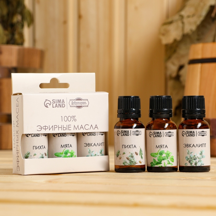 Набор эфирных масел 3 шт "Пихта, Мята, Эвкалипт" по 15 мл