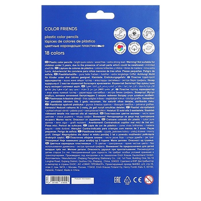 Карандаши 18 цветов ErichKrause Color Friends, трехгранные, пластиковые, МИКС