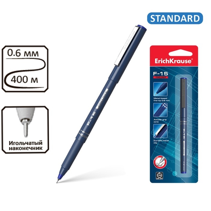 Ручка капиллярная ErichKrause F-15, узел 0.6 мм, чернила синие, длина линии письма 400 метров