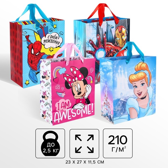 Пакет подарочный, 23х27х11.5 см, упаковка, 4 вида МИКС
