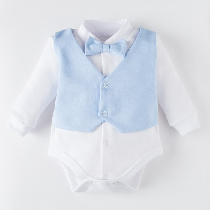 Боди Крошка Я "Костюм", белый/голубой, МИКС, рост 62-68 см