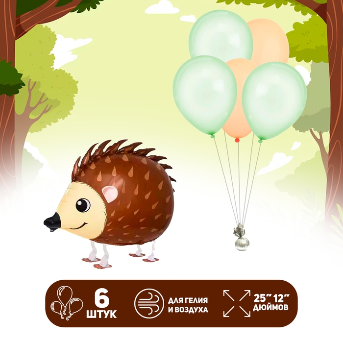 Набор шаров «Ёж на лапках», латекс, фольга, 6 шт.