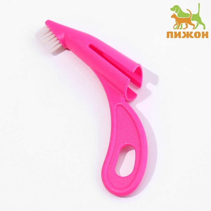 Щётка для чистки зубов животных, 5,5 х 2,5 см, розовый контейнер 7 х 4 см