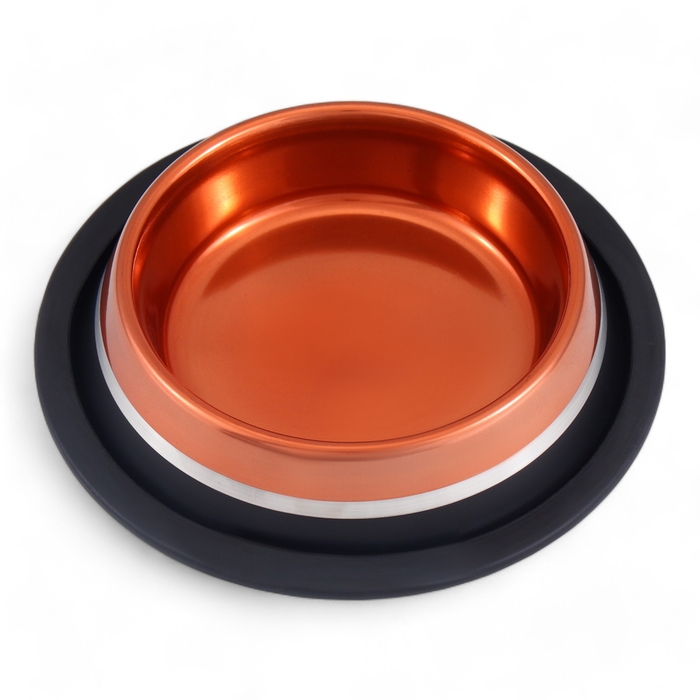 Изготовленная из высококачественного металла и резины, миска отличается прочностью и долговечностью. Благодаря нескользящему основанию, миска надежно фиксируется на любой поверхности, предотвращая скольжение и проливание пищи. Это обеспечивает удобство для вашего питомца и чистоту вокруг места кормления.