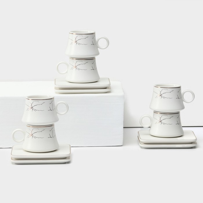 Набор керамический кофейный «Мейси», 12 предметов: 6 чашек 100 мл, 6 блюдец d=11 см, цвет белый
