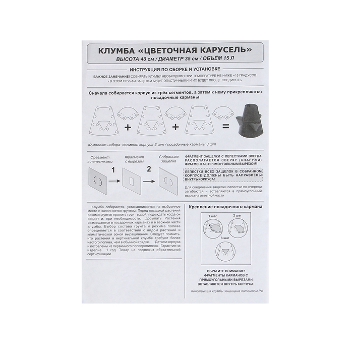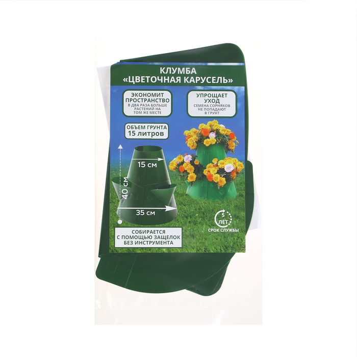 Клумба пластиковая, d = 15–35 см, высота бортика 40, «Цветочная карусель», зелёная