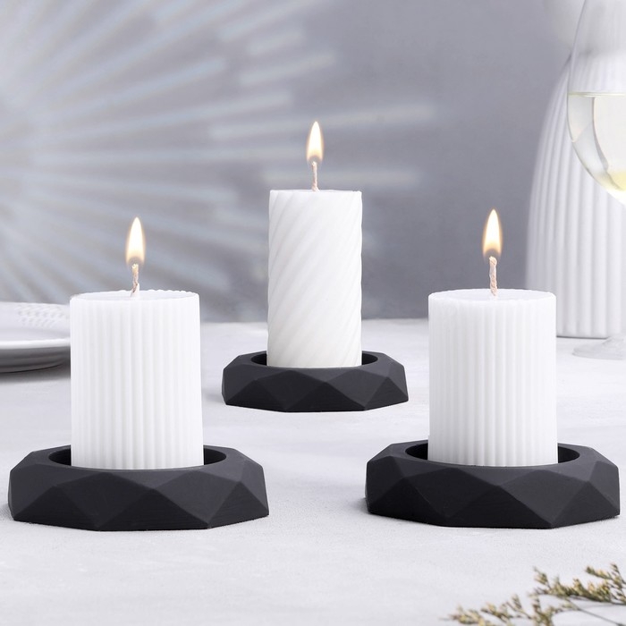 Подсвечник "Грани", набор 3 шт, 2,3х10 см, графит