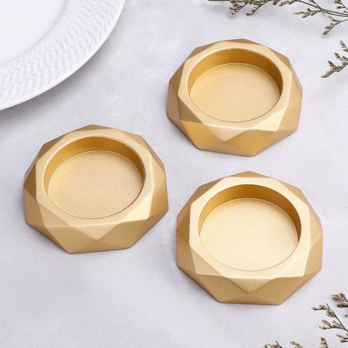 Подсвечник "Грани", набор 3 шт, 2,3х10 см, золото