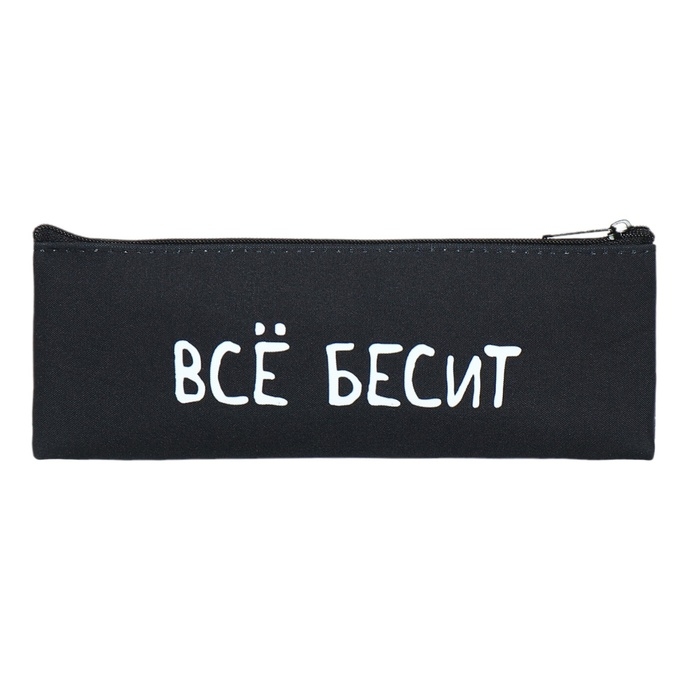 Пенал мягкий, 1 отделение 75 х 195 мм, плоский, Hatber, "Всё бесит!" чёрный NPk_64196