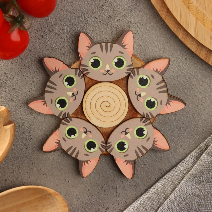 Подставка под горячее "Серый кот", D=12, можжевельник