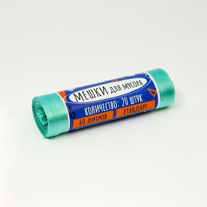Мешки для мусора в рулоне "UpakLand" 60 л, зеленый, ПНД, 9 мкм, 20 шт