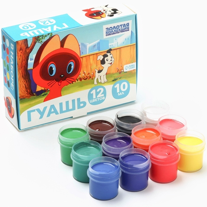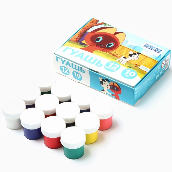 Гуашь 12 цветов по 10 мл, «Котенок по имени Гав», Союзмультфильм