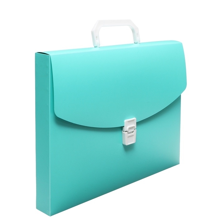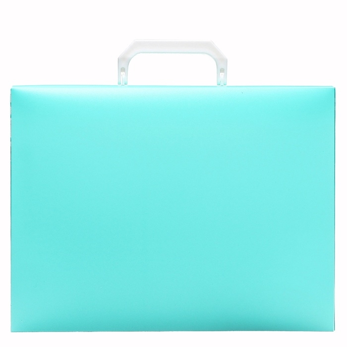 Папка-портфель Calligrata серии «Акварель» c 1 отделением формата А4 предназначена для транспортировки документов и различных предметов. Вмещает до 220 листов. Она изготовлена из пластика толщиной 700 мкм. Выполнена в мятном цвете. Портфель размером 330 х 235 х 35 мм застегивается на замок, имеет пластиковую ручку черного цвета. Папка упакована в пакет.