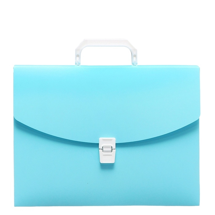 Папка-портфель Calligrata серии «Акварель» c 1 отделением формата А4 предназначена для транспортировки документов и различных предметов. Вмещает до 220 листов. Она изготовлена из пластика толщиной 700 мкм. Выполнена в бирюзовом цвете. Портфель размером 330 х 235х35 мм застегивается на замок, имеет пластиковую ручку черного цвета. Папка упакована в пакет.